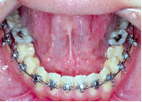術前矯正が終わりました。一見きれいになったようですが下あごはまだ左にずれたままです。