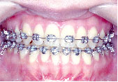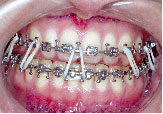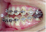 クォードヘリックスで上顎歯列を左右へ拡げた後、右上第1小臼歯を抜歯し、エッジワイズブラケットを付けて術前矯正を始めました。