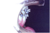上あごは左へ2mm,前方へ2mm(Le Fort 1型)、下あごは右後方へ3.5mm,正面右へ3mm、左後方へ2.5mm(IVRO)、また顔のバランスをとるためあごの先を前方に5mm移動しました。(genioplasty)手術が終わり、退院当日にできるだけ来院していただきます。この方は手術後13日目でした。