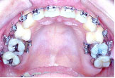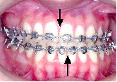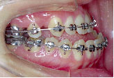 クォードヘリックスで上顎歯列を左右へ拡げた後、右上第1小臼歯を抜歯し、エッジワイズブラケットを付けて術前矯正を始めました。